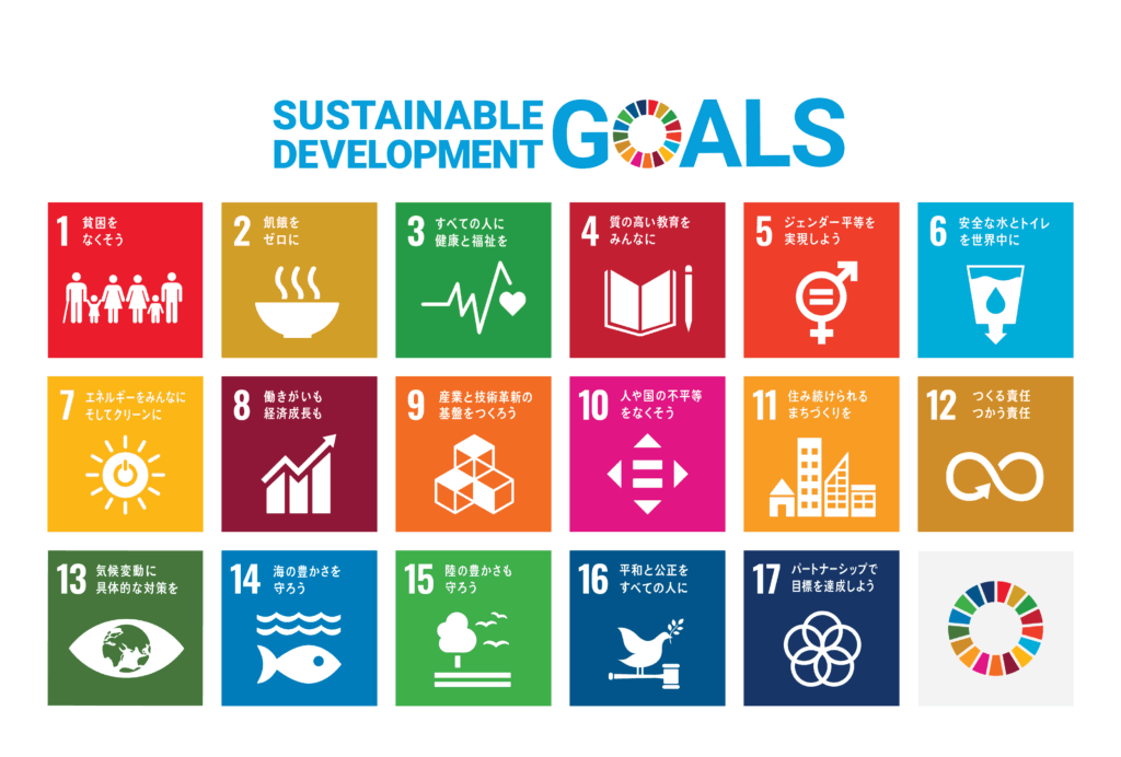 SDGs(エスディージーズ:Sustainable Development Goals)は、2015年に国連が採択した2030年までに達成を目指す国際目標です。 「貧困をなくそう」「すべての人に健康と福祉を」など17の目標と169の具体的なターゲットで構成され、地球環境の保全、経済成長、社会的包摂を同時に実現することを目指しています。 私たちも事業活動を通じて、持続可能な社会の実現に貢献していきます。